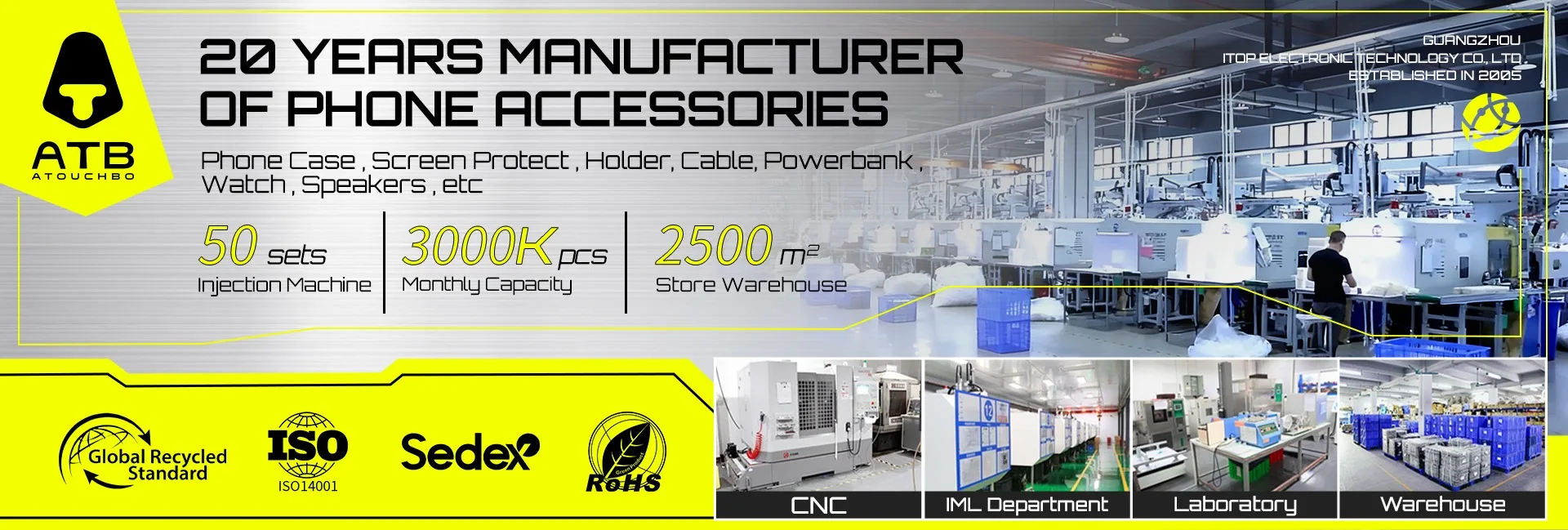 Atouchbo Electronic Technology Co., Ltd, 20 years of experience in the R&D, production, and sales of mobile phone accessories. We operate both our own and partner factories.0ur products are fashionable andcreative, with many finished products, strong strength,and business scope covering all regions of the world.