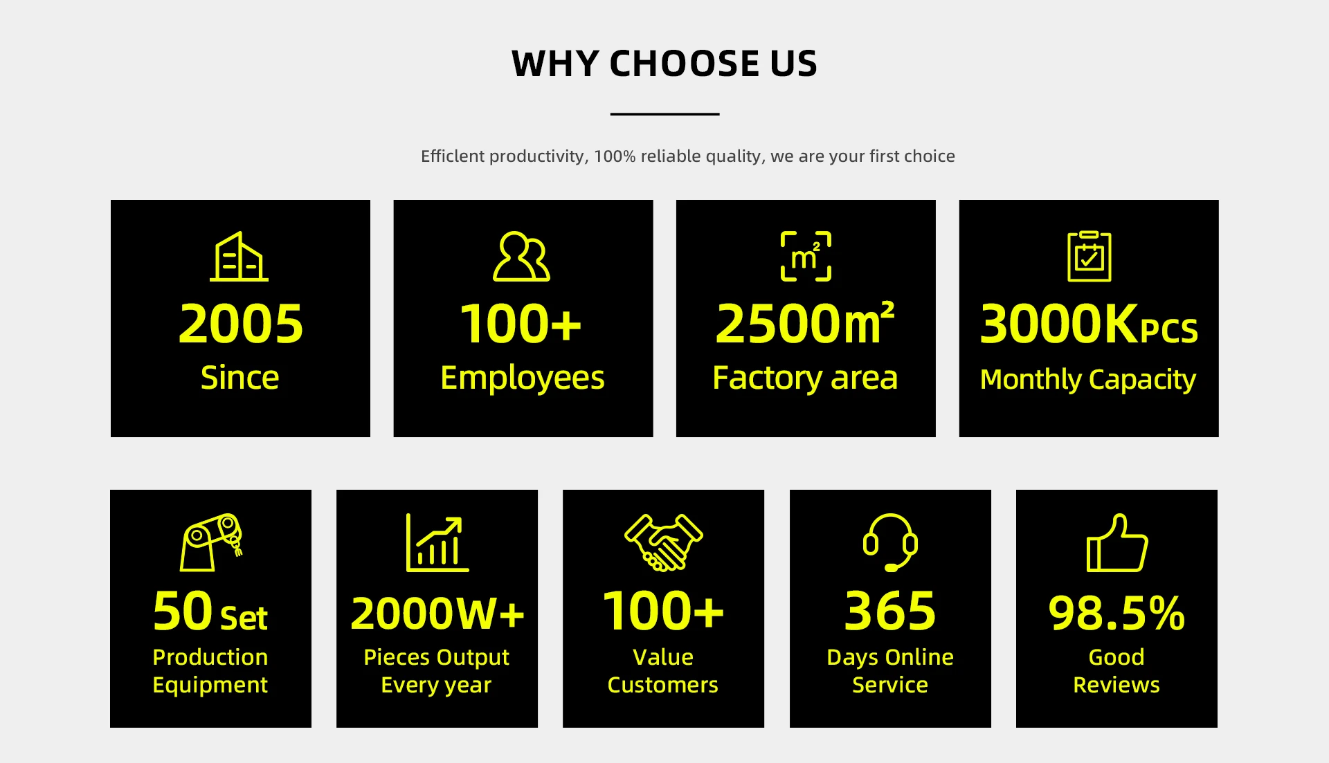 We are ISO9001 certified, with RoHS, FCC, and SGS certifications, and are able to meet the needs of over 3,000 customers worldwide.